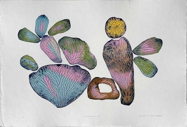 ”Coralline 39” är ett verk av Cecilie Lie gjort år 2025. Tekniken är Kollografi, handkolorering på bomullspapper och finns i en upplaga på 1. Verket mäter 39 x 57 cm. Det är signerat på framsidan.
