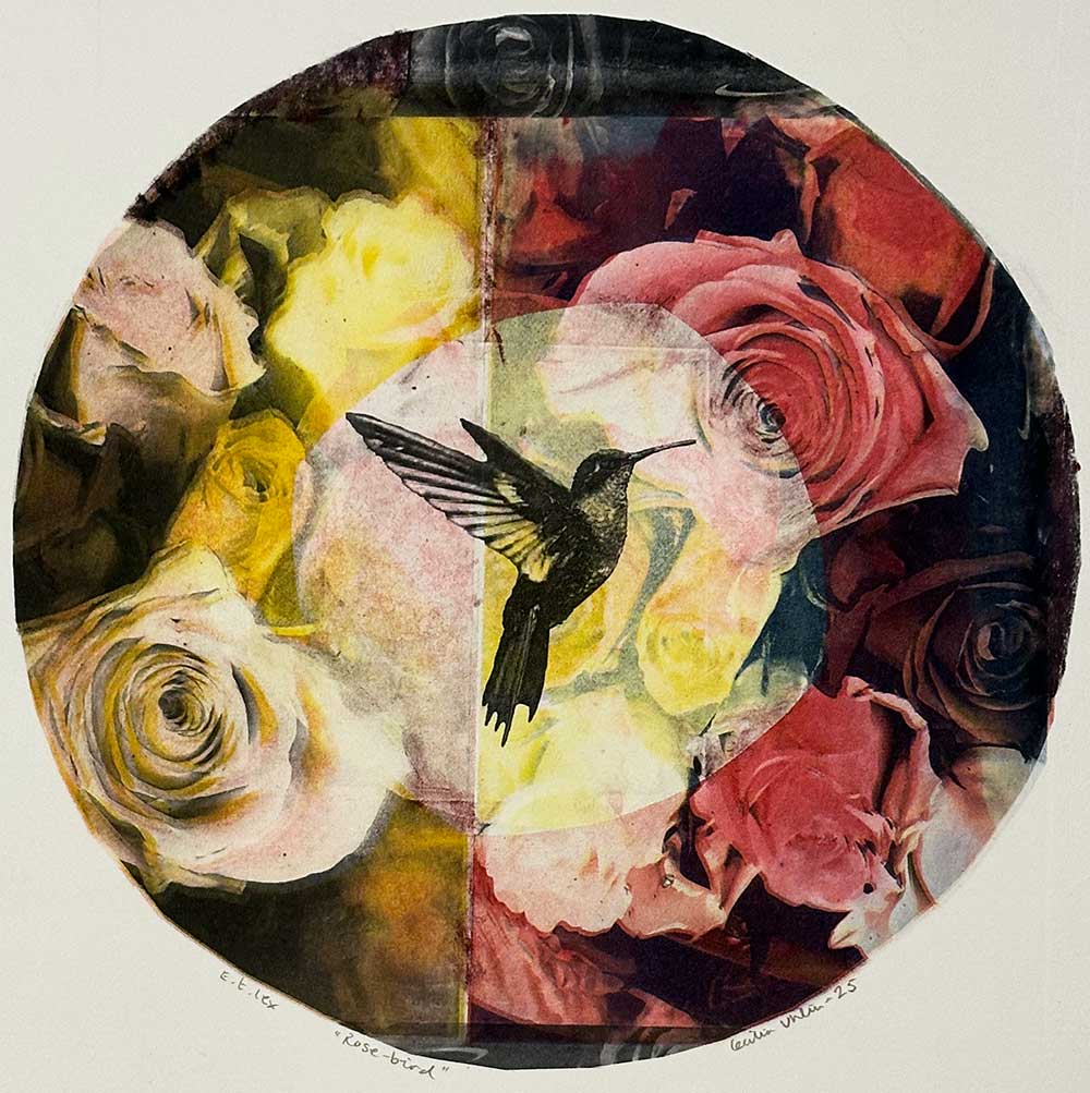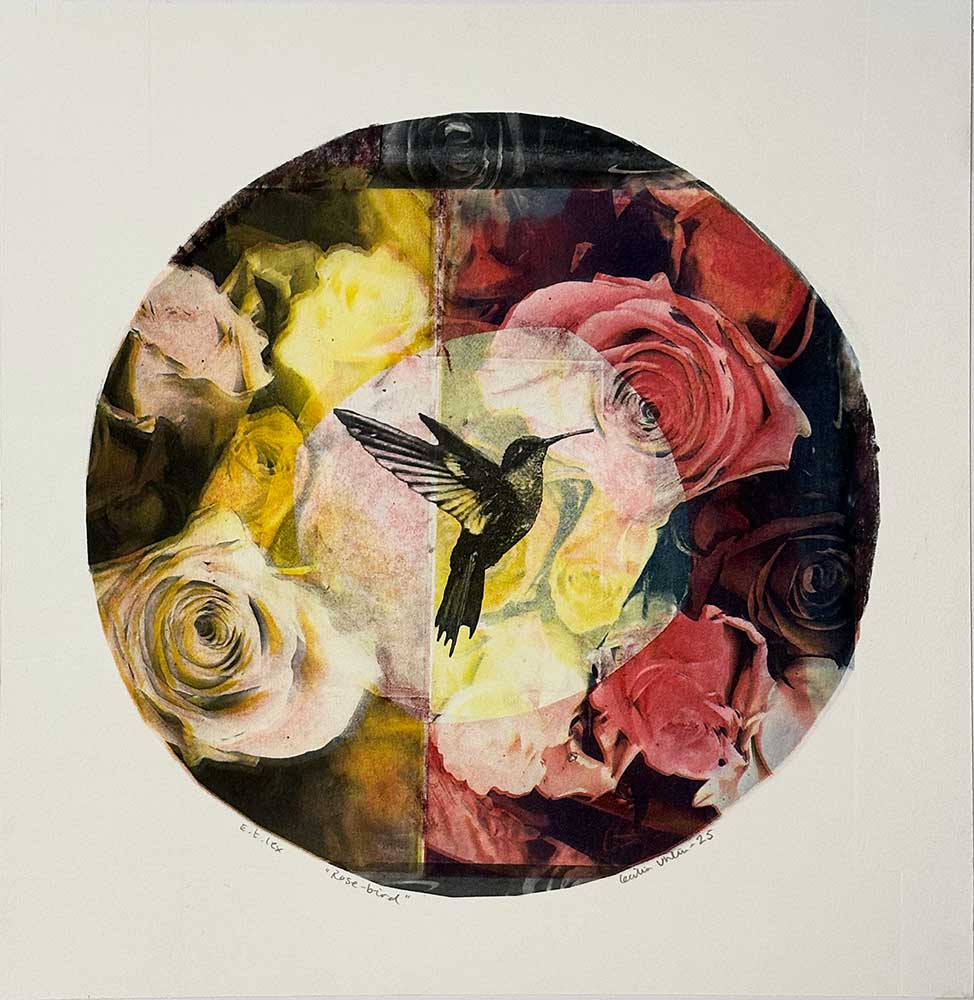 ”Rose-bird” är ett konstverk av Cecilia Uhlin. Det är en Fotopolymer/etsning/torrnål på papper gjord 2025 i en upplaga om 1 exemplar och mäter 35 x 34 cm, med en bildyta på 28 x 2 cm. Signerat och numrerat på framsidan av konstnären.